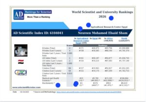 إسهاماتها العلمية تدعم الأمن الغذائي والصحة العامة، وتتماشى مع رؤية مصر 2030 في مجالات الاقتصاد الأخضر والتنمية المستدامة.