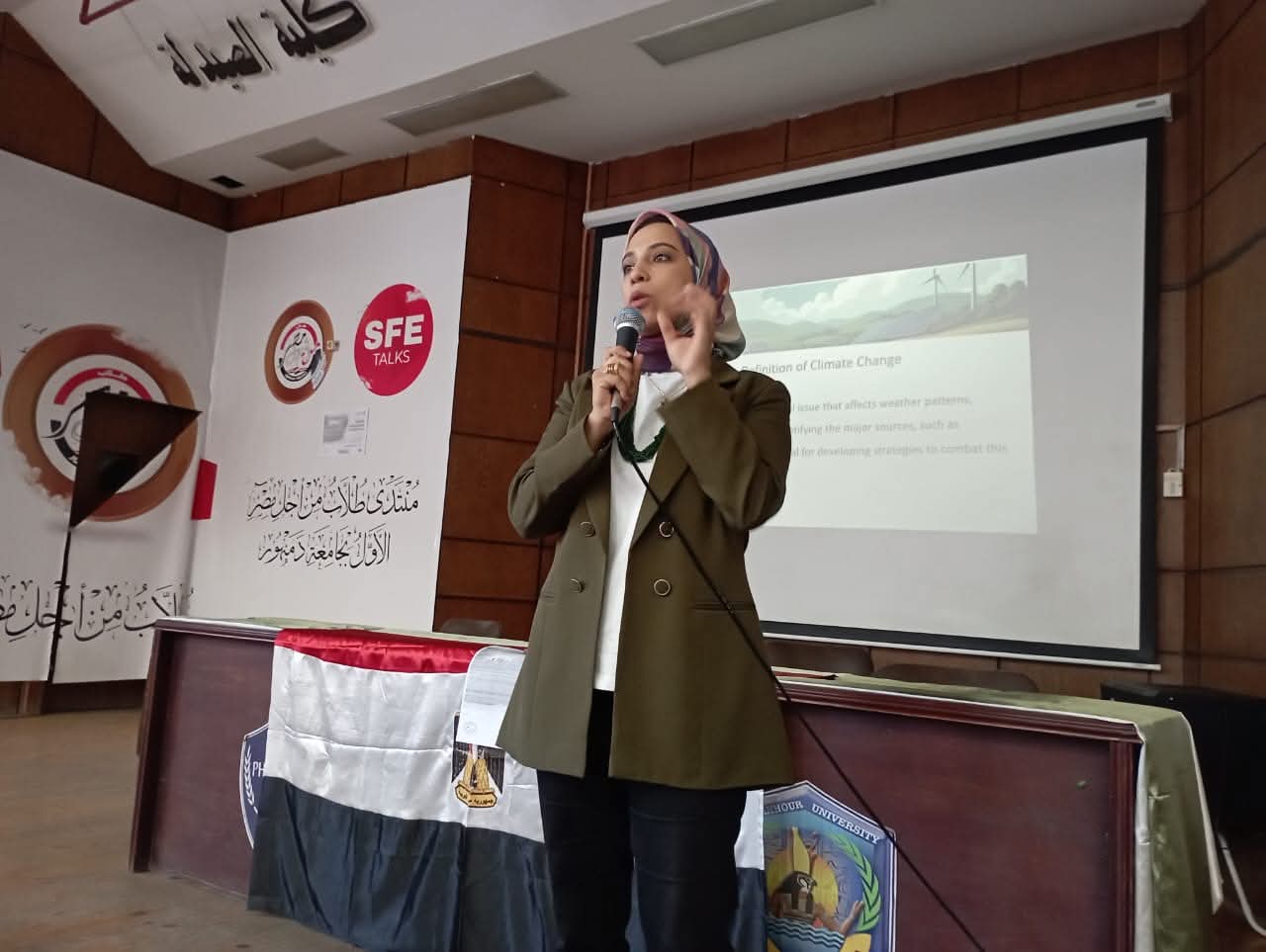 بمحاضرة تناولت فيها ظاهرة التغير المناخي وأخطار حرق قش الأرز والمخلفات الزراعية على البيئة والإنسان، مع طرح حلول عملية للإستفادة من المخلفات وتحويلها إلى موارد اقتصادية مستدامة