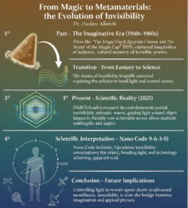 لقد انتقل حلم الاختفاء من عالم الكوميديا في أفلام إسماعيل ياسين إلى مختبرات الفيزياء التطبيقية وعلم وتقنية النانو. بينما ما زلنا في المراحل الأولى من البحث، فإن القدرة على تجميد وثني الضوء وتحويل مساره تمثل خطوة ملموسة نحو جعل الخيال العلمي واقعًا يمكن اختباره علميًا.