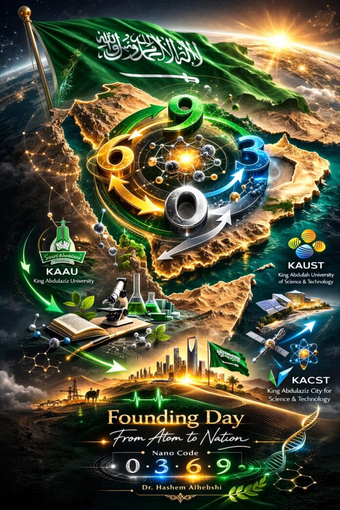 لم يكن التأسيس حدثًا عابرًا، بل منهجًا نعيشه. ومن فهم قانون البناء في أصغر مكوناته، يستطيع كل باحث ومواطن المشاركة في بناء أكبر كيانات الوطن. ومن هنا، لم تكن شيفرة النانو9630 مجرد تفسير للعلم، بل قراءة سعودية لدورات البناء الحضاري، تربط بين الذرة والدولة، بين المختبر والقرار، وبين الانهيار والبناء المستدام.
